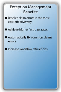 Clean claims are sent to the payor host system for processing, claims with specific types of errors are sent back to providers for edits, while other error types are placed in queue for analysis. The result is higher first-pass rates, as well as a streamlined and cost-effective process to handle claim errors.